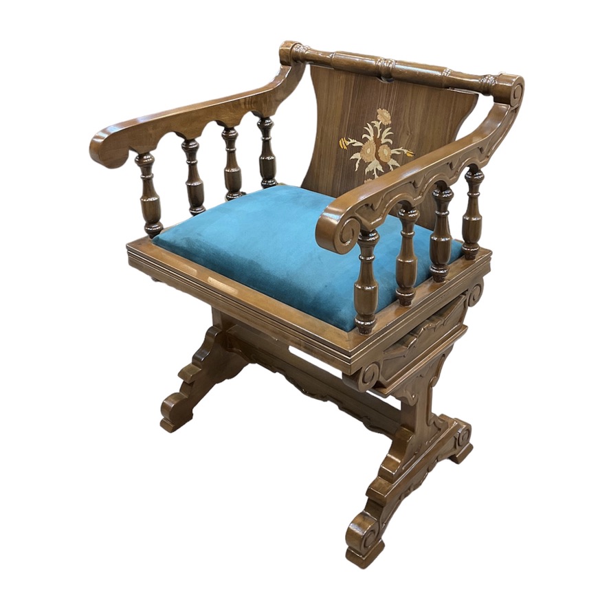 پشتی صندلی و پایه های ان مجددا از هنر خراطی استفاده شده