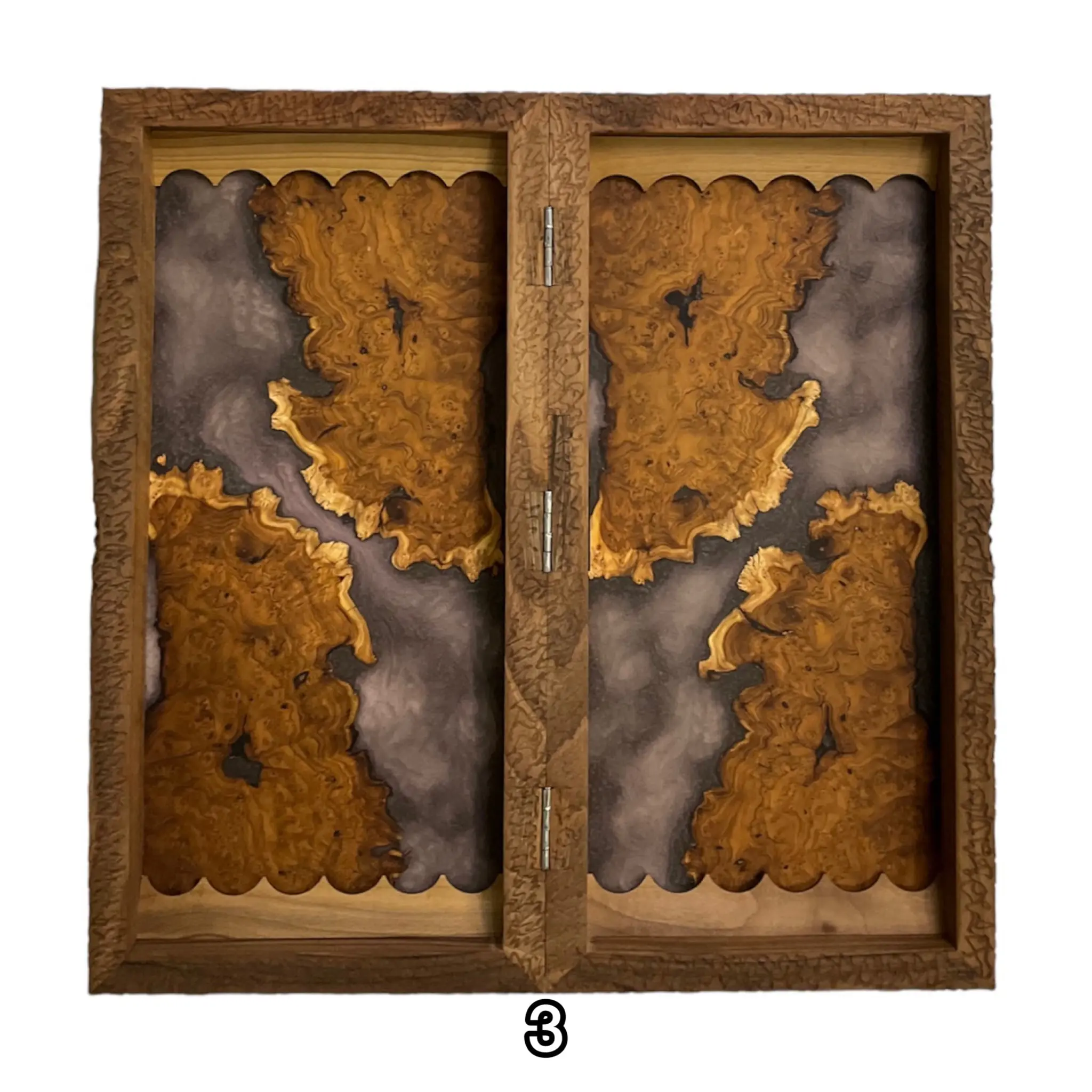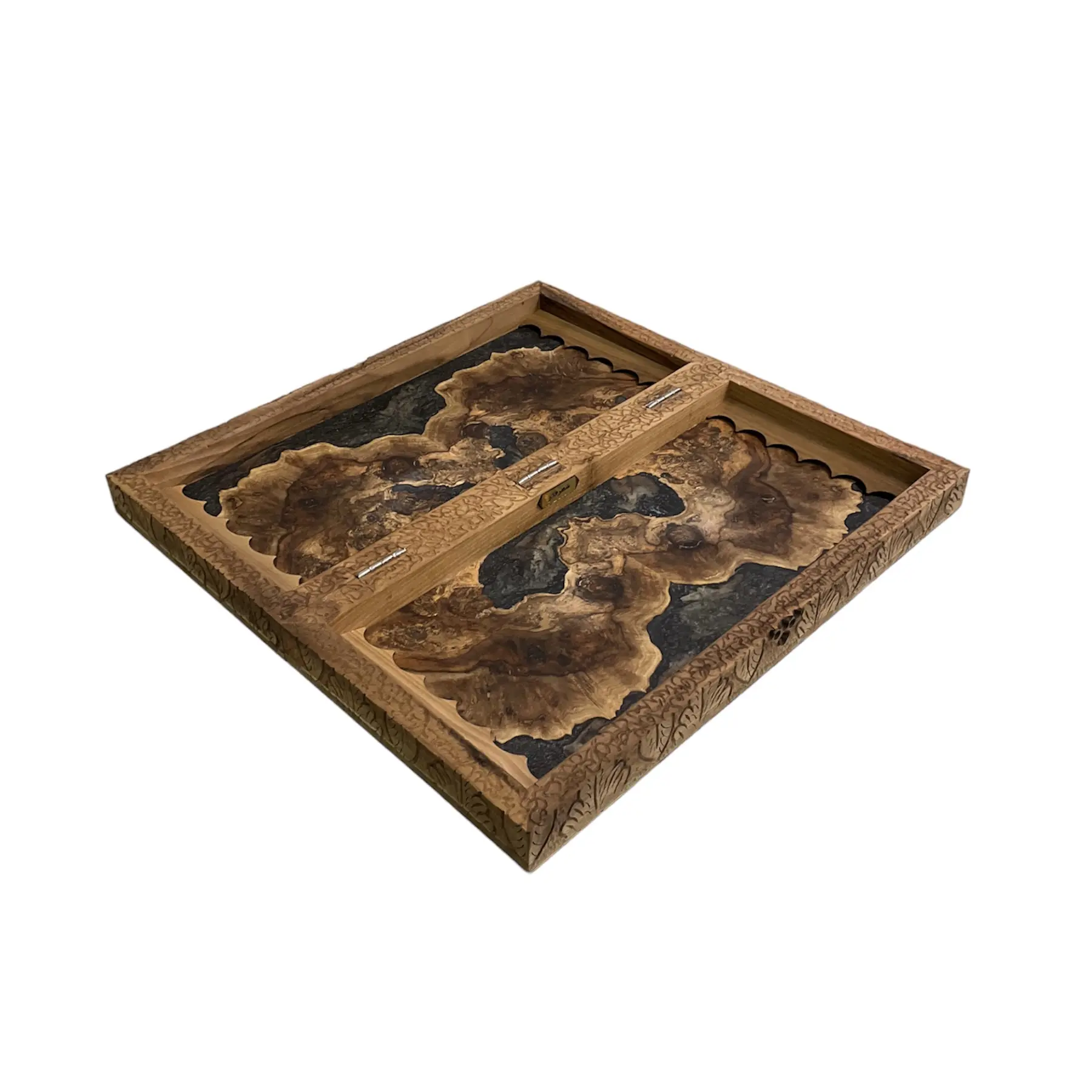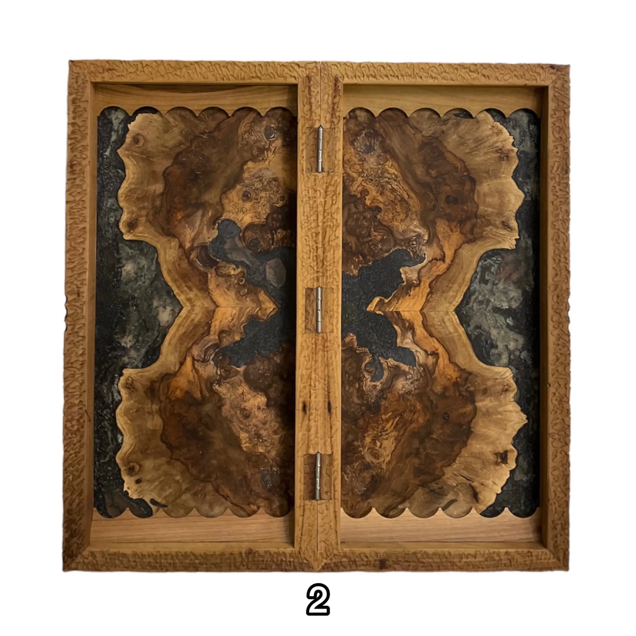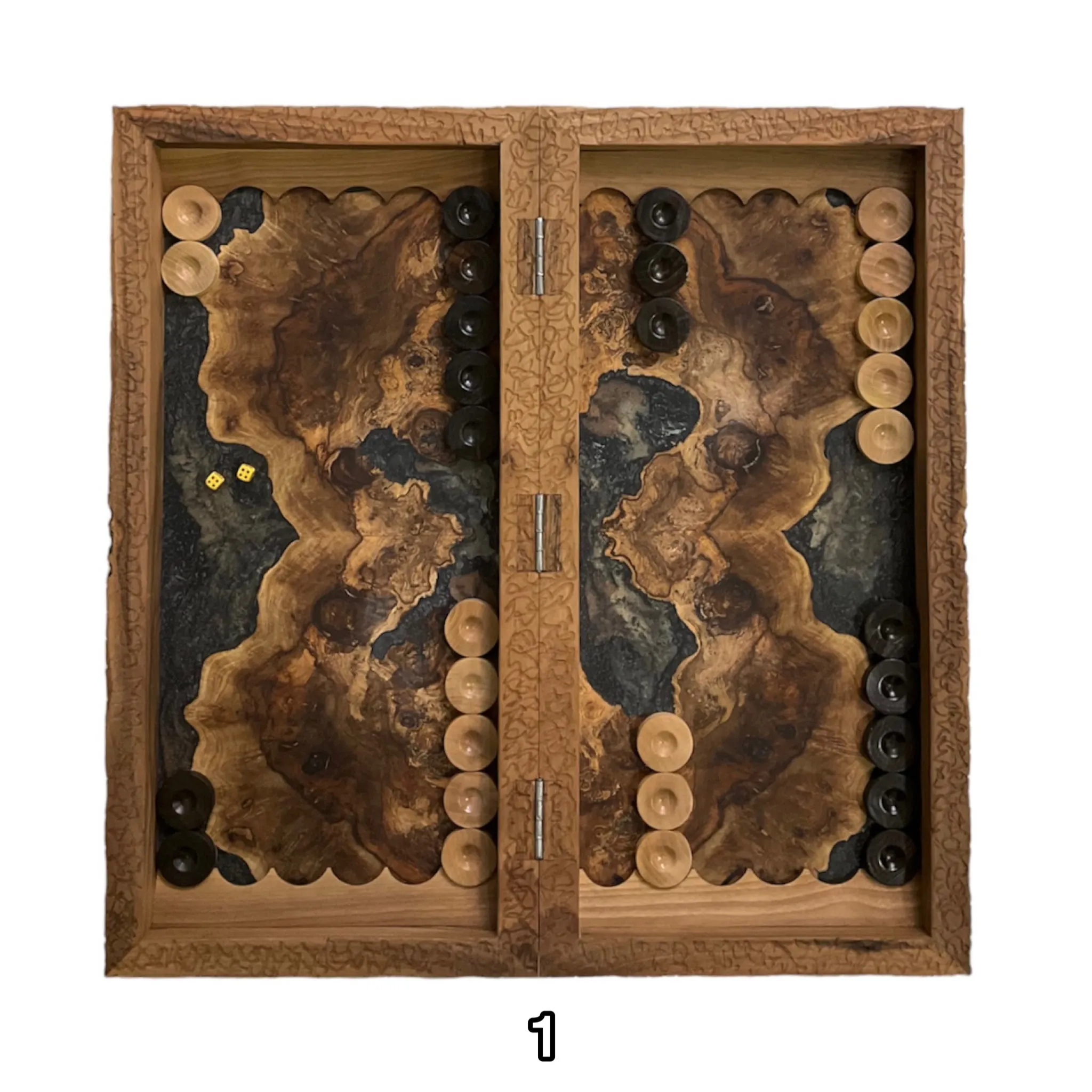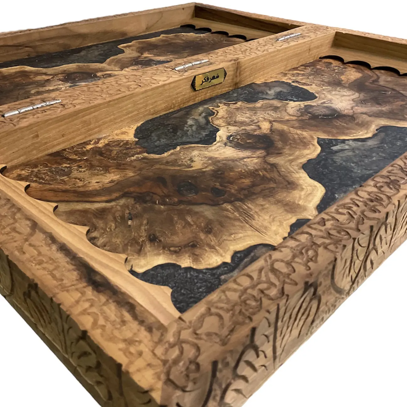 درون این تخته نرد اپوکسی زیبا با رنگ های تیره رنگ اصلی چوب استفاده شده است که بسیار طرحی خاص و کمیاب میباشد