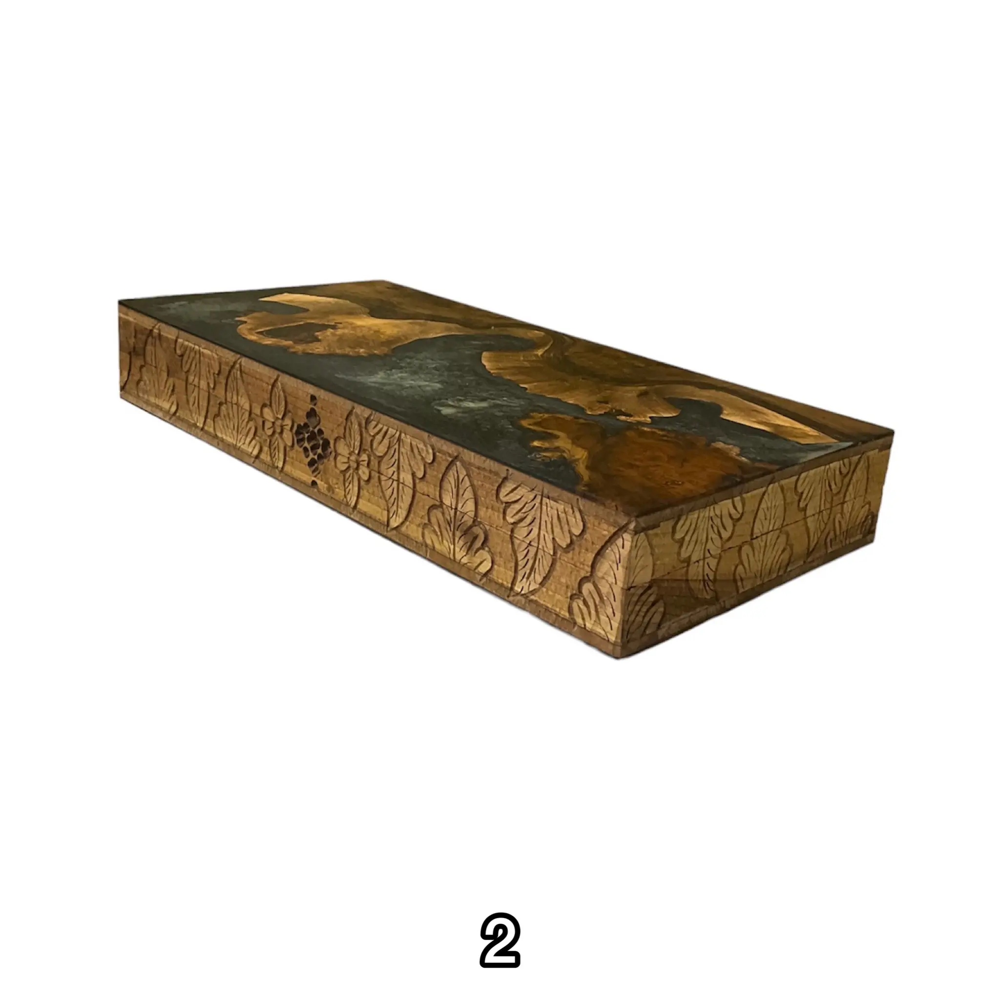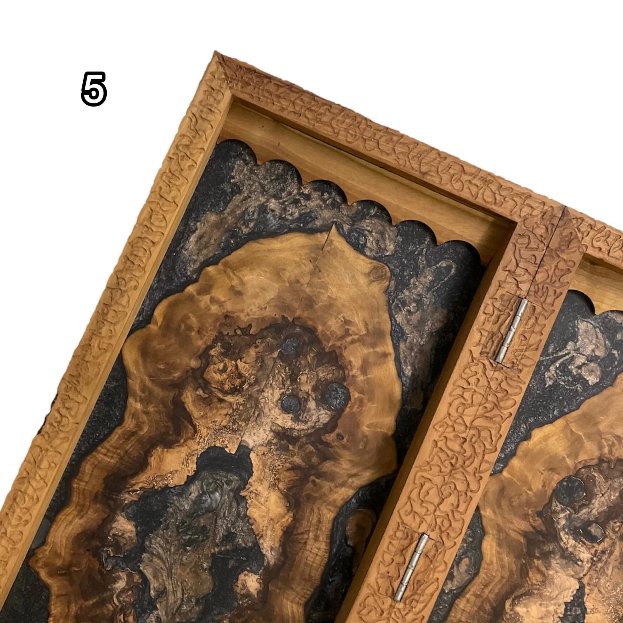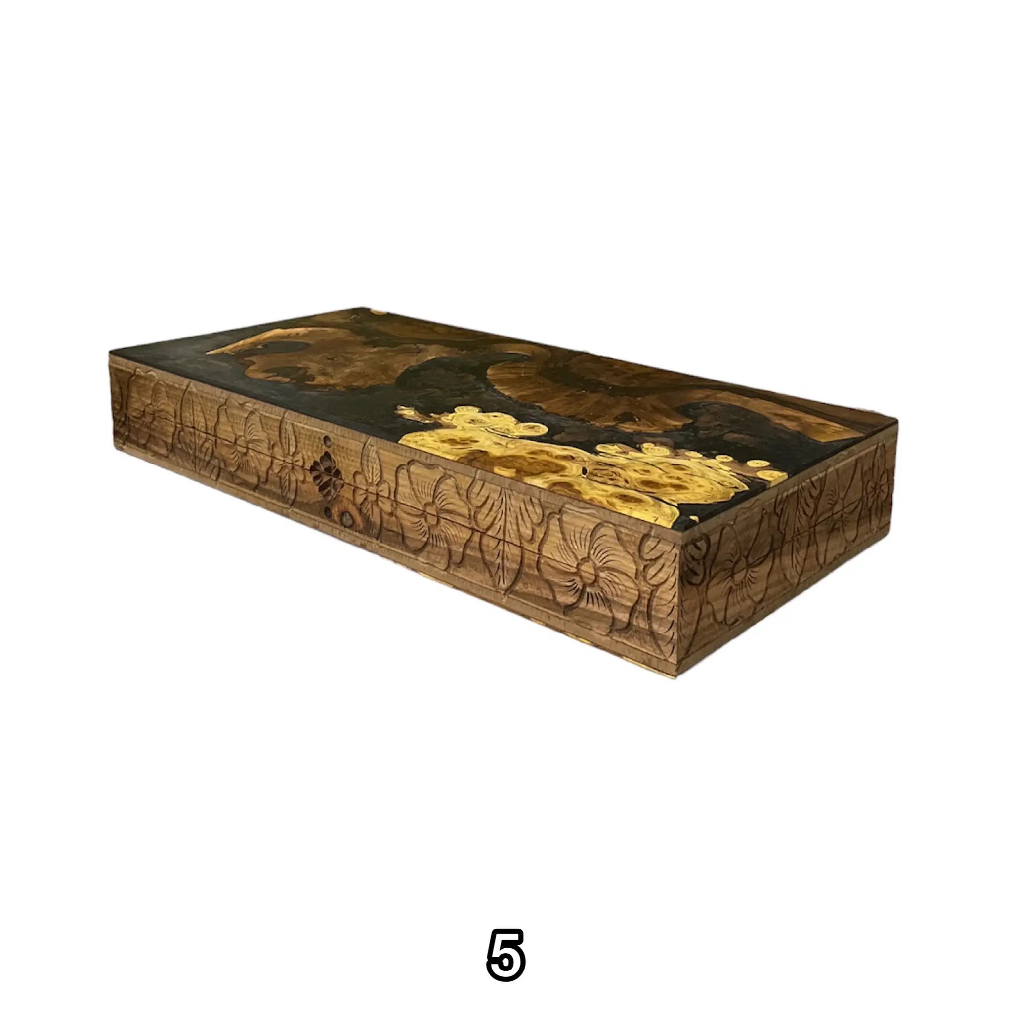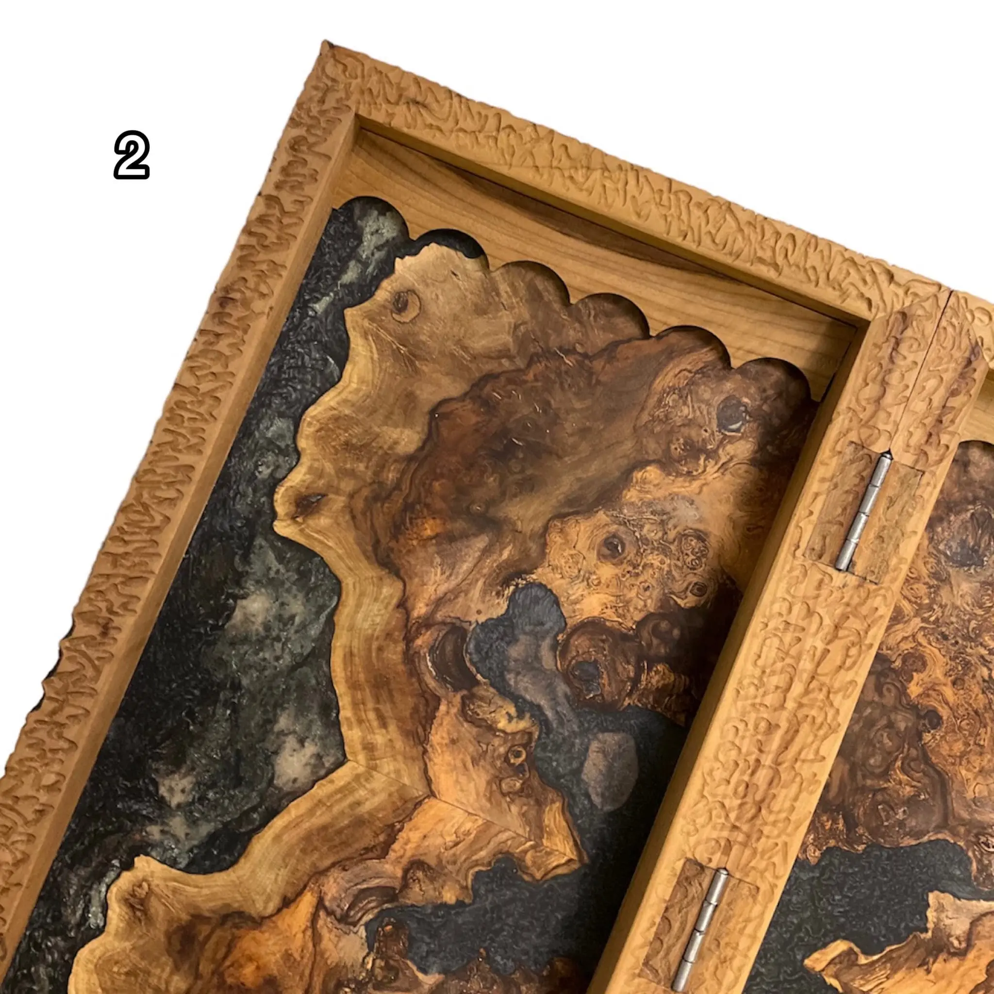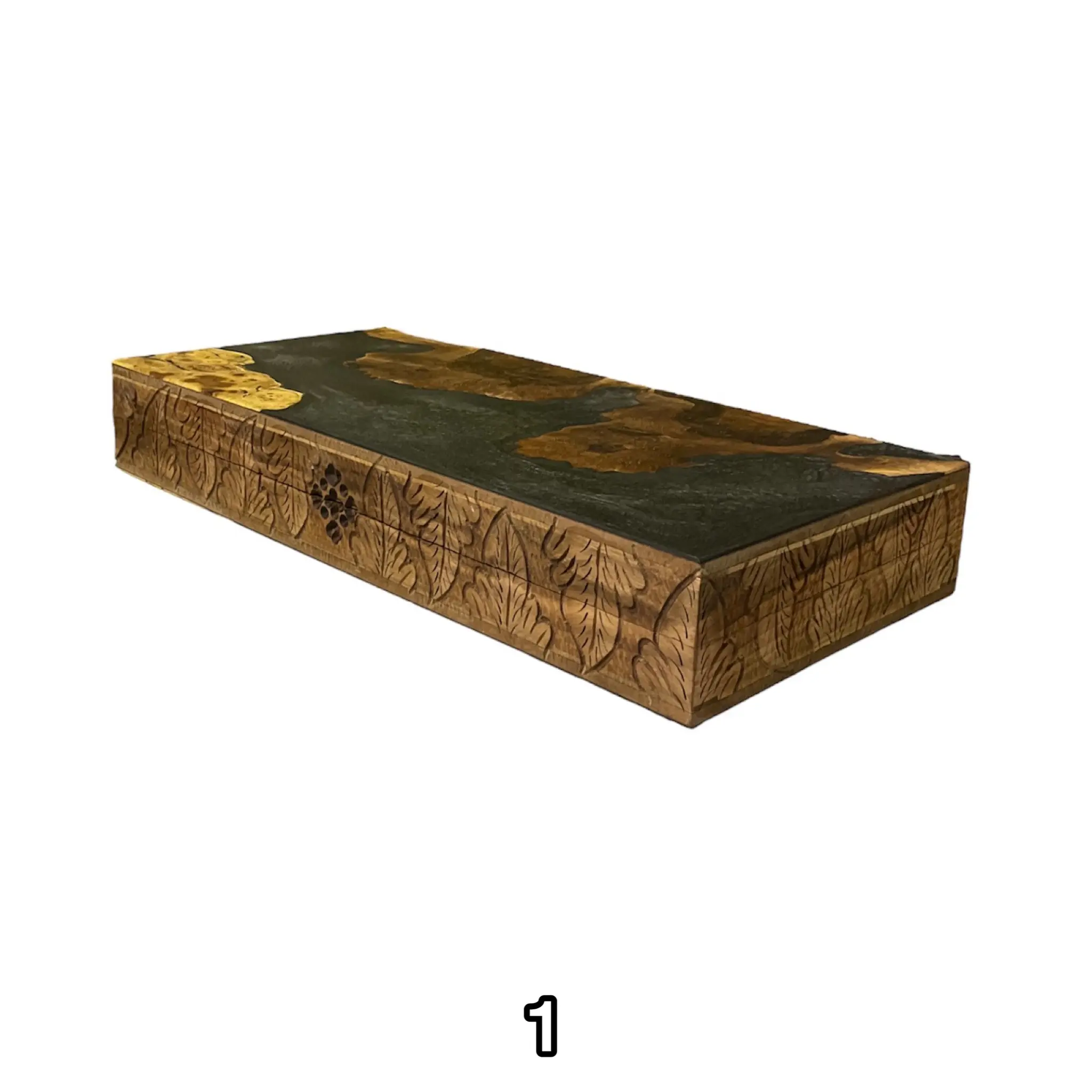 درون این تخته نرد اپوکسی زیبا با رنگ های تیره رنگ اصلی چوب استفاده شده است که بسیار طرحی خاص و کمیاب میباشد