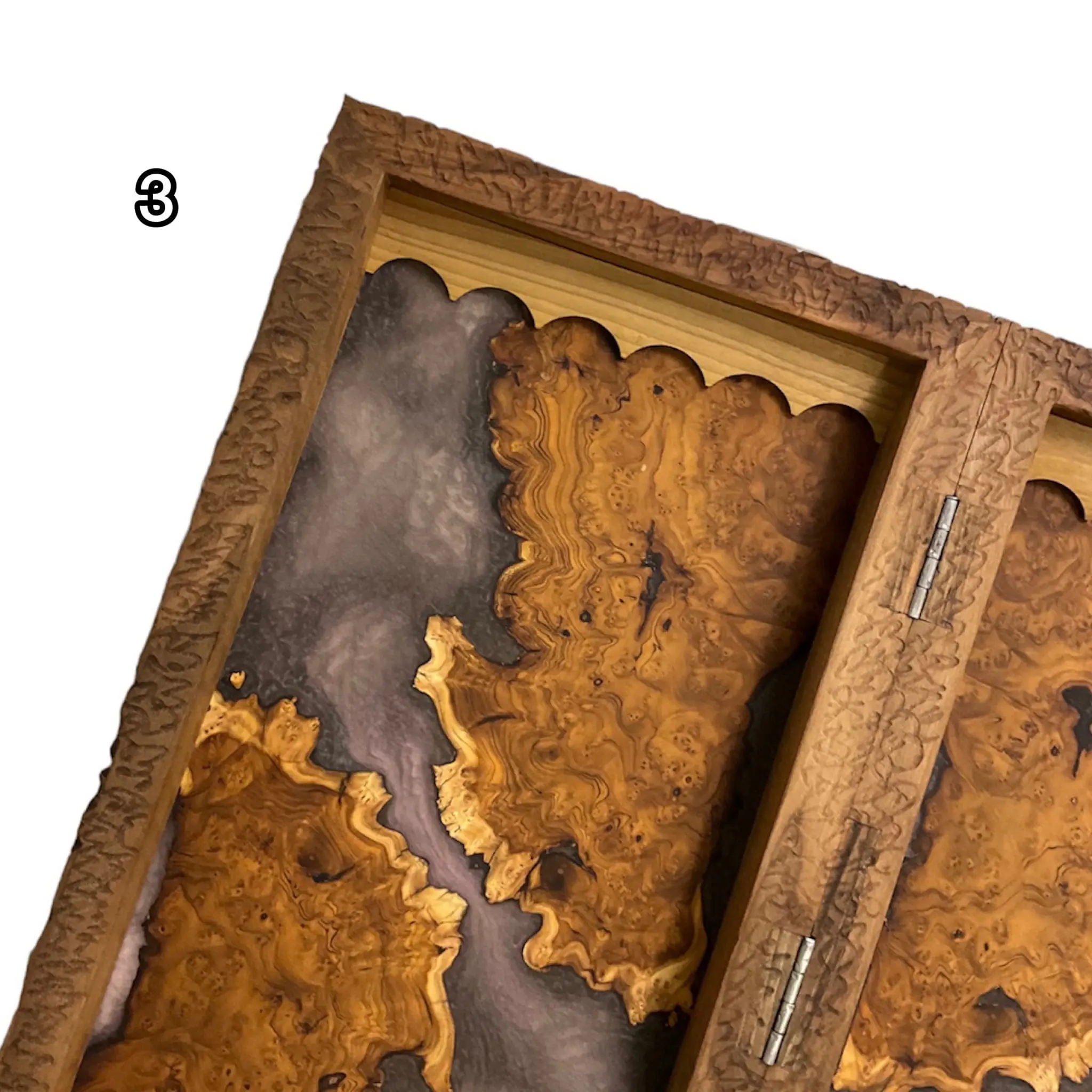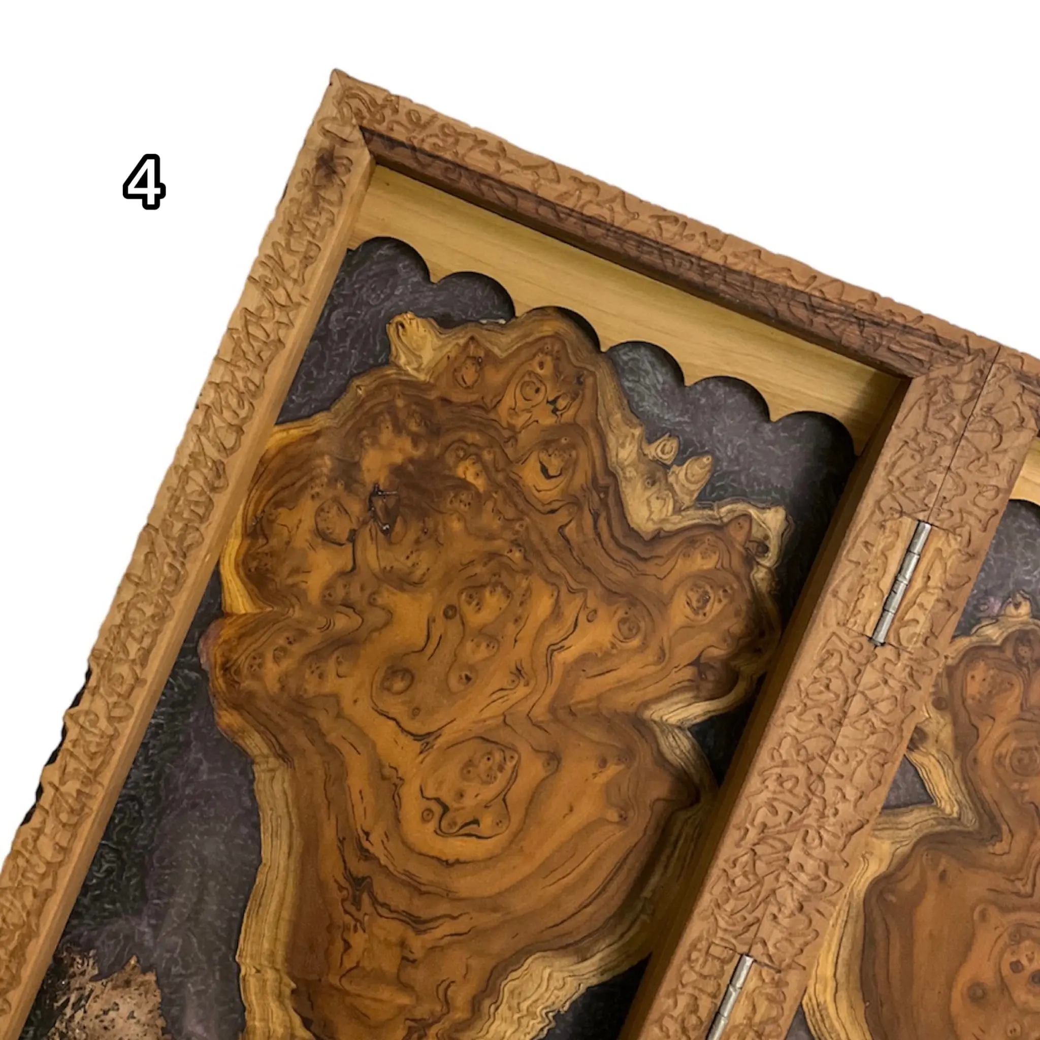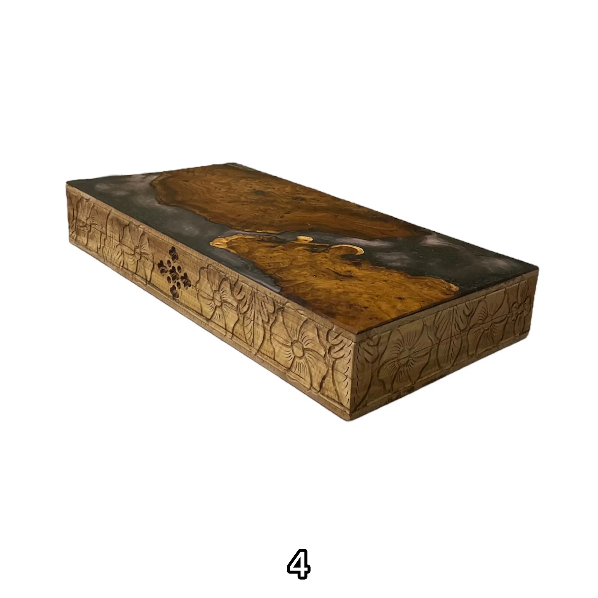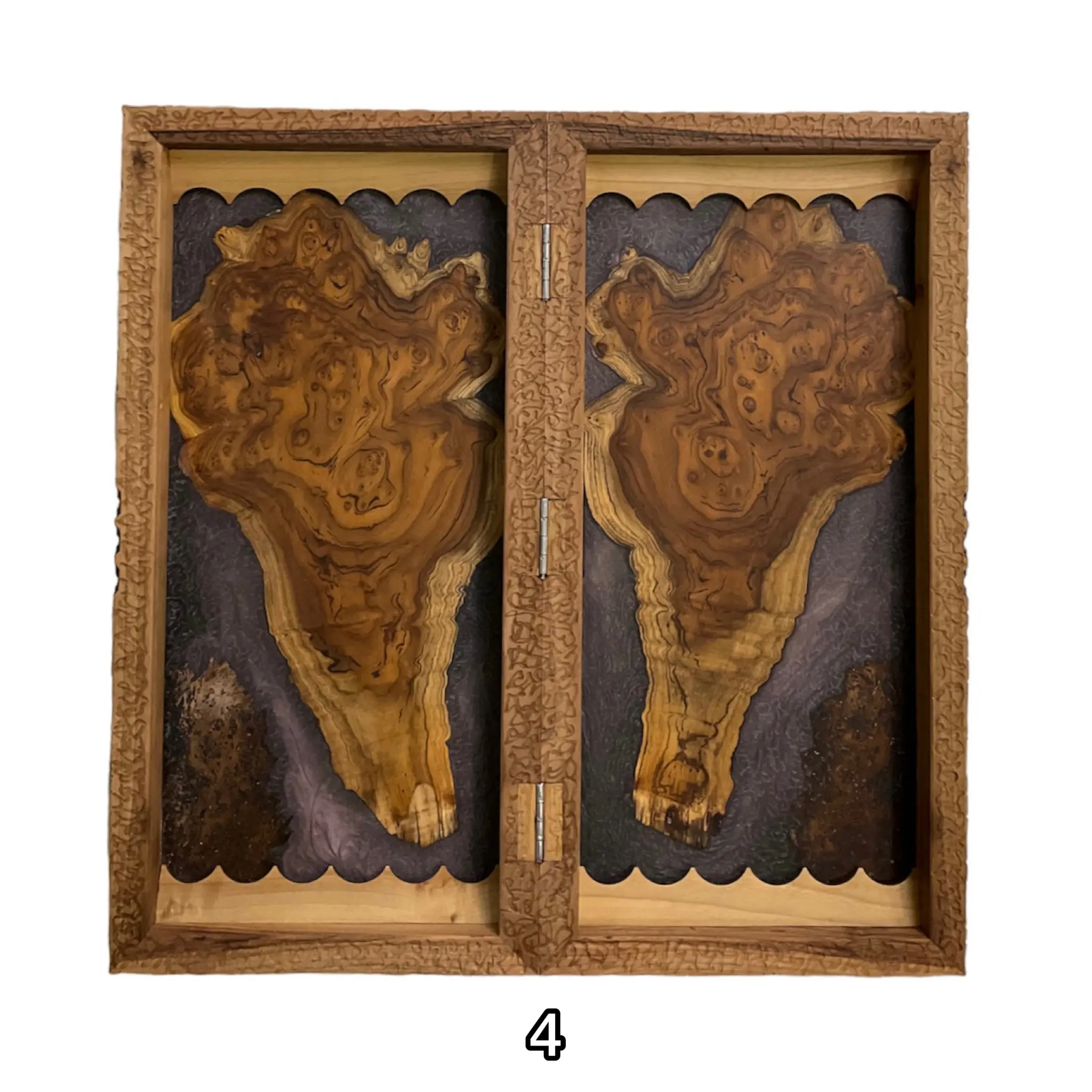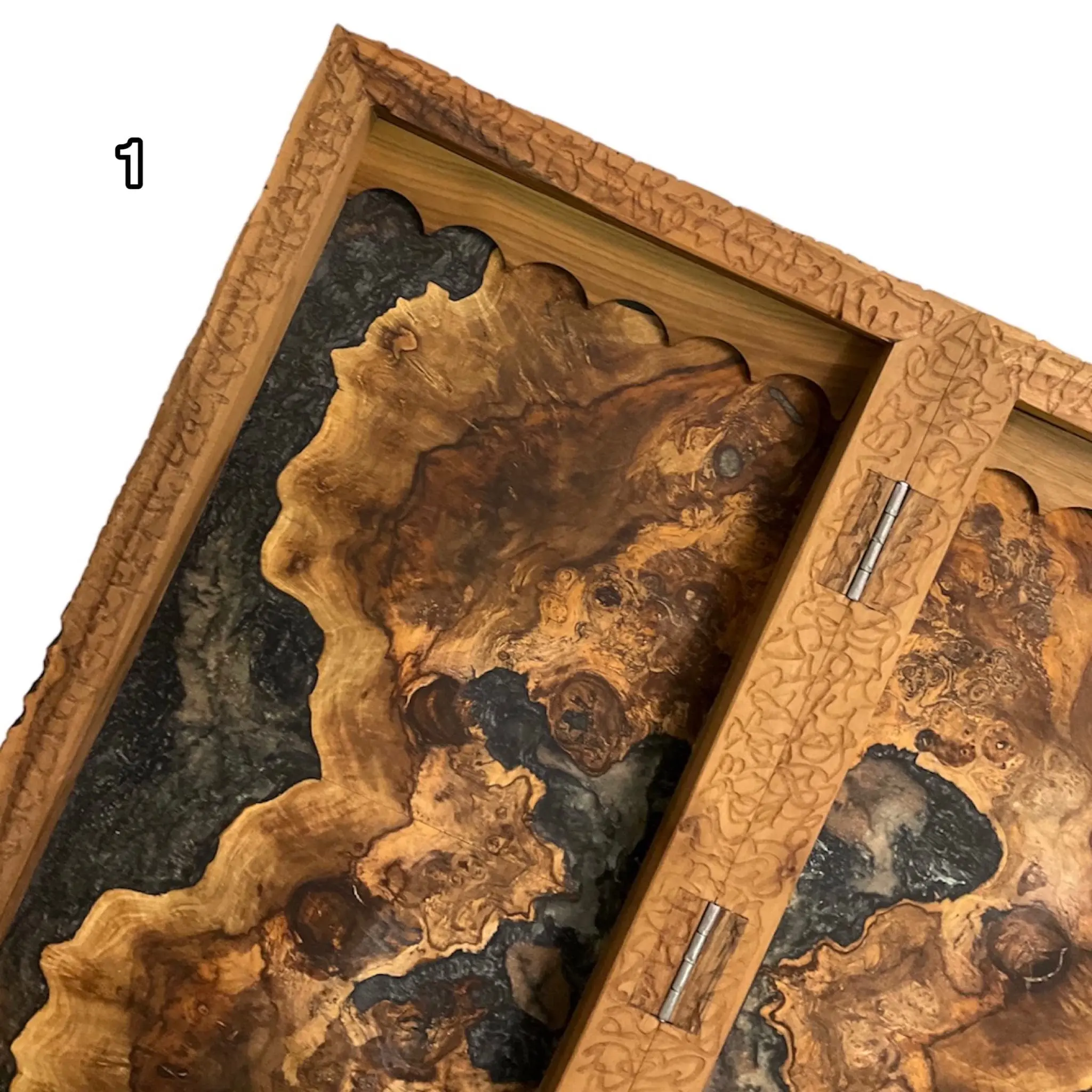 درون این تخته نرد اپوکسی زیبا با رنگ های تیره رنگ اصلی چوب استفاده شده است که بسیار طرحی خاص و کمیاب میباشد