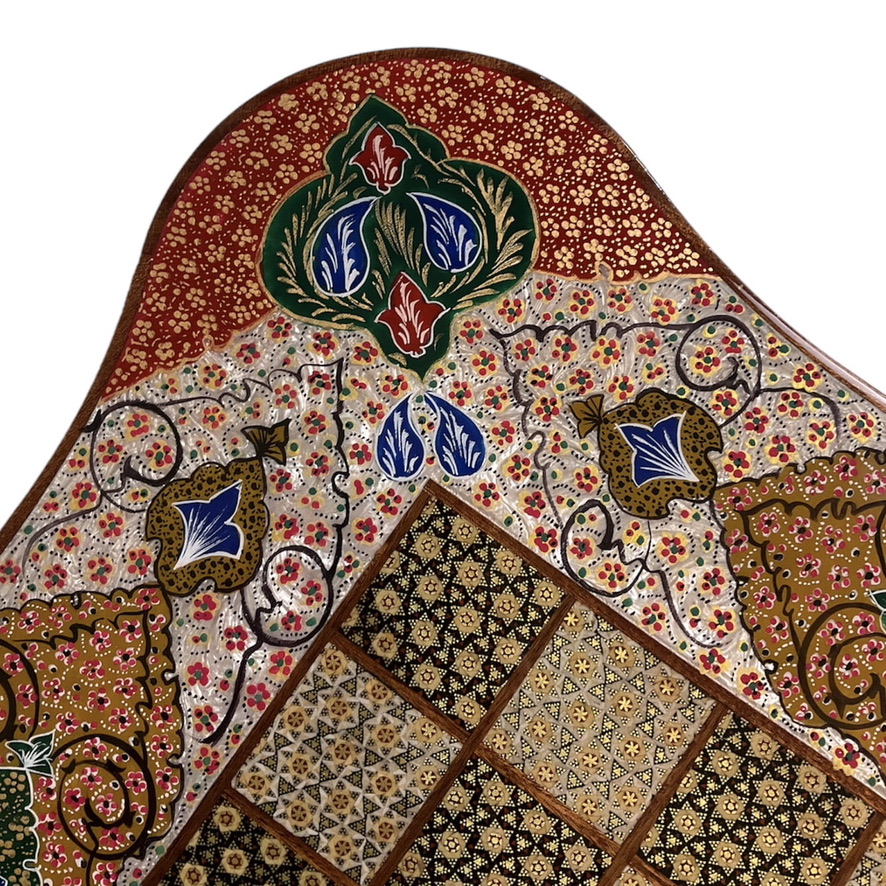 نقاشی این تخته نرد ، یکی از بخش های چشم نواز آن است که از نقاشی تذهیب روی پودر صدف استفاده کرده ایم .