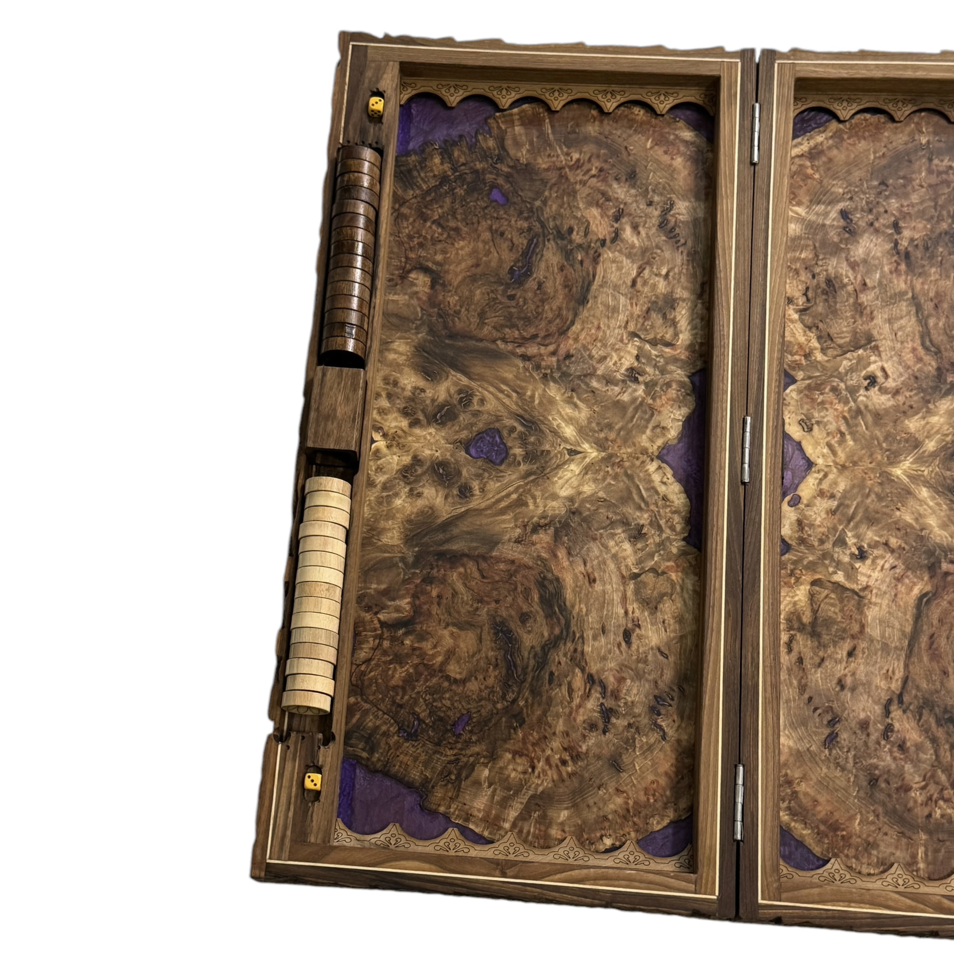 داخل این تخته نرد اپوکسی بنفش استفاده شده است و یک کار شکیل و خاص را به وجود آورده است.
