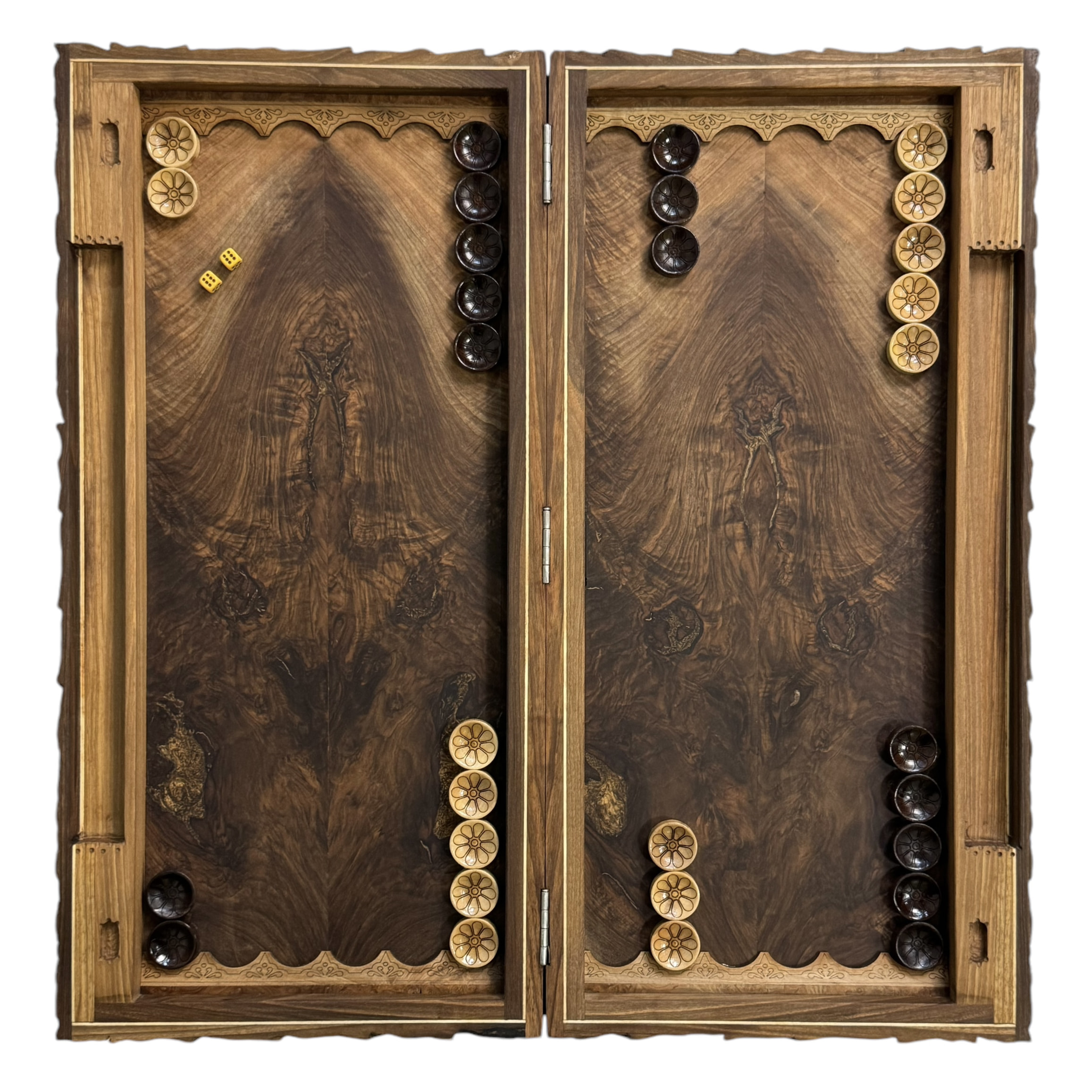 اولین ویژگی این تخته نرد نوع چوب آن میباشد ،معمولا از چوب گردو گردو برای تخته نرد های منبت استفاده میشود