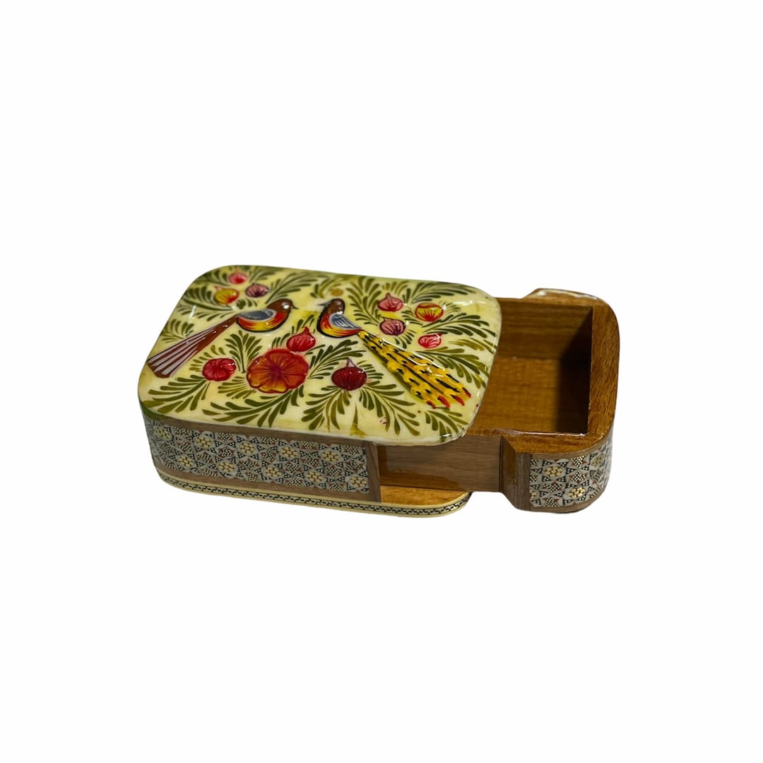 جعبه پاسور خاتم کشویی طرح گل و مرغ برجسته