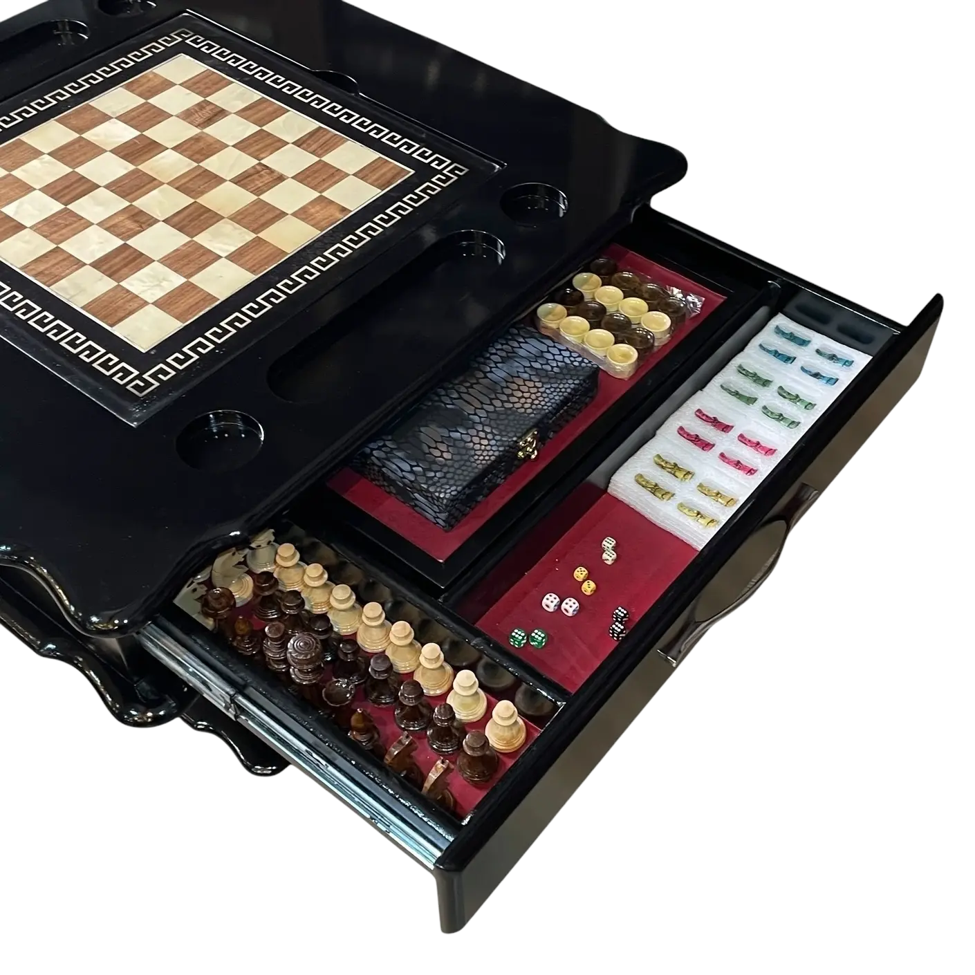میز و صندلی تختهنرد ۷ کاره، یک انتخاب خاص و هوشمندانه برای عاشقان بازیهای رومیزی، فضاهای لوکس و دورهمیهای خاص خانوادگی یا دوستانهست. این ست نه فقط یک میز سادهست، بلکه یک مجموعه تفریحی کامل با طراحی کلاسیک، چشمنواز و کاربردی هست.