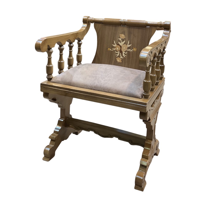 پشتی صندلی و پایه های ان مجددا از هنر خراطی استفاده شده