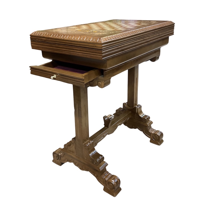 این میز دو منظوره است که شامل بازی تخته نرد و شطرنج و به راحتی میتوانید زمینه بازی را عوض کنید.