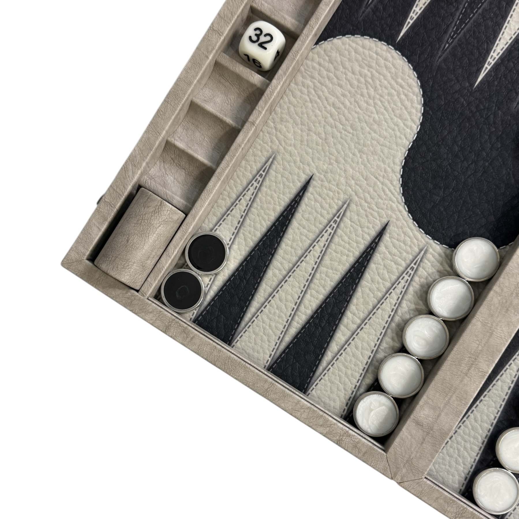یکی از ویژگی‌های خاص این تخته نرد، جایگاه مجزا برای مهره، تاس و کیوب است که مشابه نمونه‌های اروپایی طراحی شده و نظم و زیبایی خاصی به فضای بازی می‌بخشد.