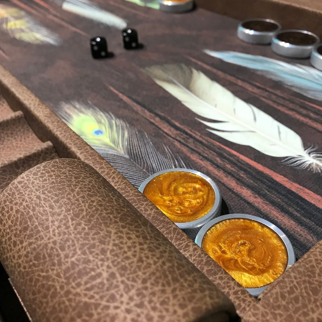 مهره های این تخته نرد فوق العاده خاص میباشد و دور مهره از المینیوم و داخل از رزین استفاده شده است ( اپوکسی ) کاملا خوش دست و سریع